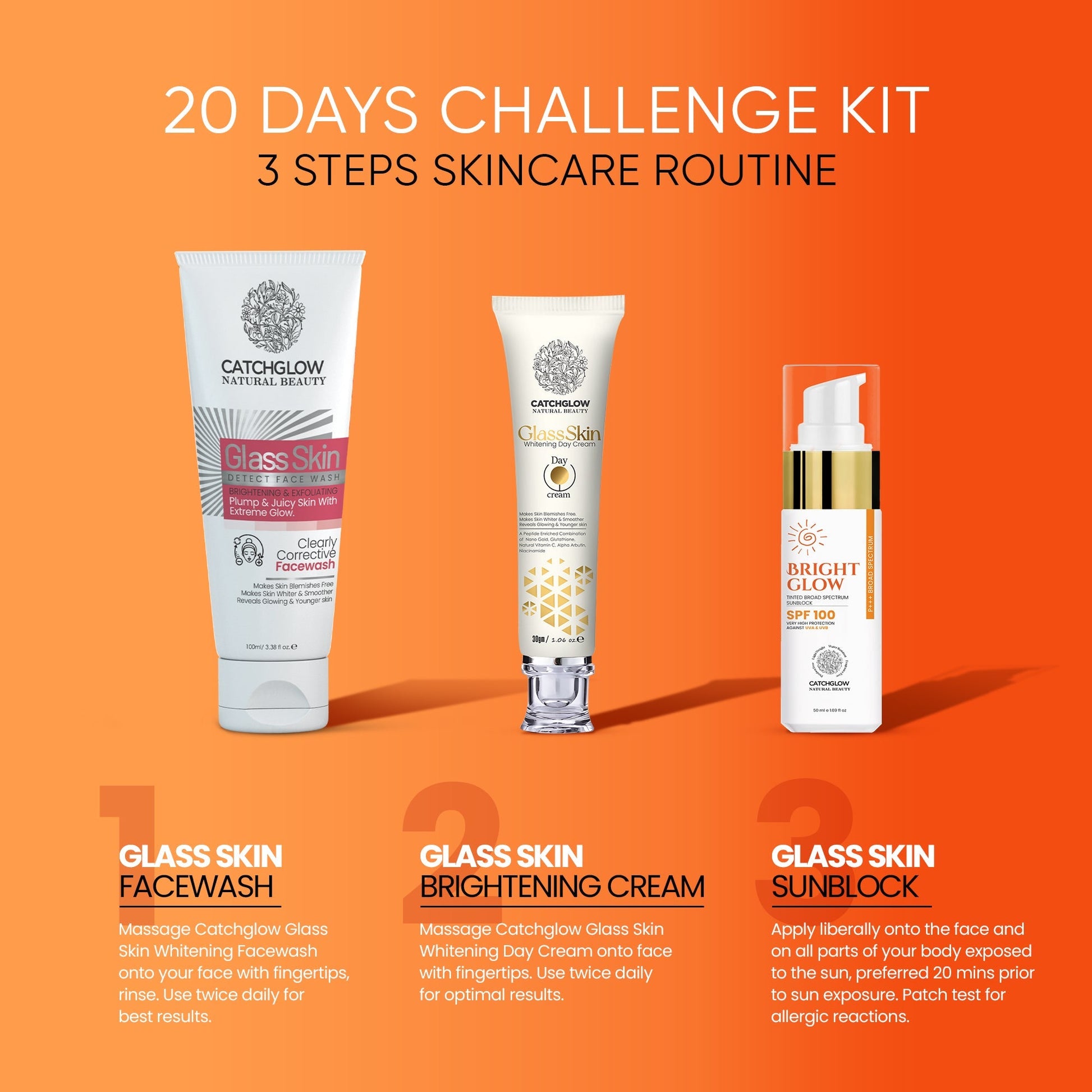 Our Glass Skin Challenge Kit is your go-to solution for crystal clear skin. Our advanced set of skincare products are designed to give you a natural, luminous complexion while improving skin tone, texture and hydration. With just 3 simple steps you can turn your skin around and get that glassy, smooth complexion.